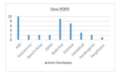 menghindari distraksi rangsangan sensorik seperti suara, cahaya, atau gerakan. Hambatan slowlearner ditempatkan dekat guru atau barisan kedua dari depan untuk membantu PDPD dalam menerima instruksi yang jelas, mudah dijangkau untuk dibimbing langsung, dan memperkecil gangguan dari teman sebaya. Speech Delay ditempatkan dekat guru dan teman sebaya yang komunikatif agar PDPD dapat meniru komunikasi teman dan mudah dipantau oleh guru dalam latihan bahasa dan komunikasi. PDPD dengan hambatan ADHD ditempatkan di barisan belakang, menjauhi jendela, dan teman yang aktif untuk meminimalisir distraksi dan memudahkan pendampingan oleh GPK. Hambatan Boderline ditempatkan dekat guru atau peserta didik yang bisa membantu secara akademik dan social. Disleksia ditempatkan di depan atau barisan tengah dekat dengan papan tulis dan media visual. Untuk membantu PDPD melihat tulisan lebih jelas. Hambatan intelektual ditempatkan dekat guru dan teman yang dapat membantu memberi pengulangan materi dan bimbingan individual. Gangguan pendengaran ditempatkan di dekat guru atau di barisan kedua dari depan.